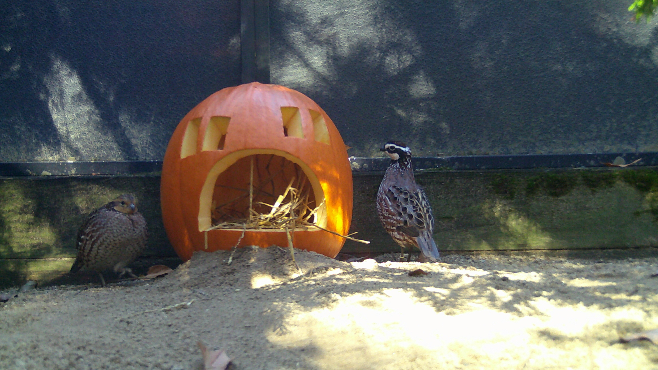 As we pass through the veil of autumn, everyone at Kellogg Bird Sanctuary gets to celebrate this natural time of transition. Come see the raptors and game birds show off their own meticulously crafted jack-o’-lanterns!  Enjoy these trail cam photos of our Northern Bobwhites, Jack and Betty, from last year in the gallery below. Look for this season’s creations out in our exhibits starting on Oct. 29, 2025!